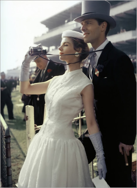 | Marie-Hélène Arnaud in lace dress by Lanvin-Castillo, photo by William Klein, French Vogue, November 1957 |