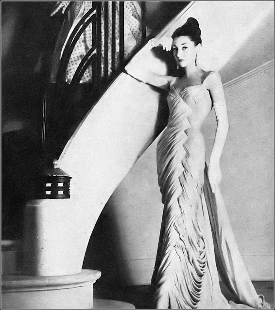 | Patricia Prunonosa in suit with ermine cape-collar by Jacques Fath, photo by Walde Huth, Paris, 1954 |